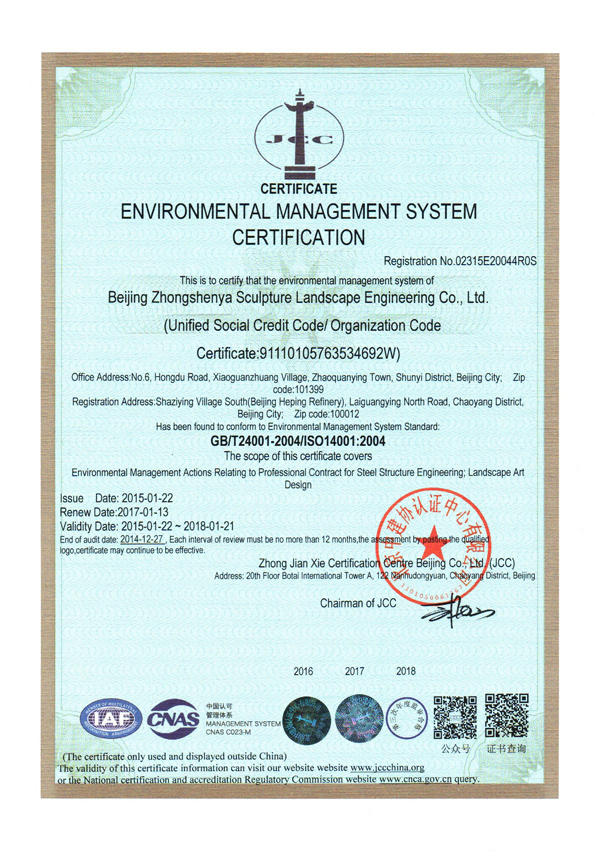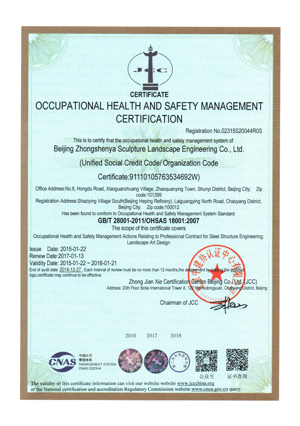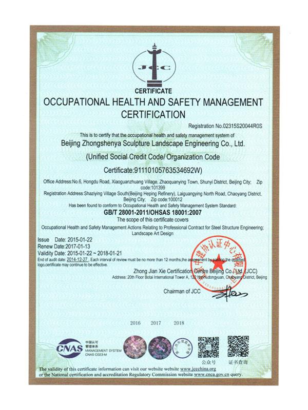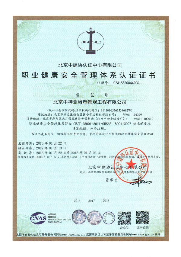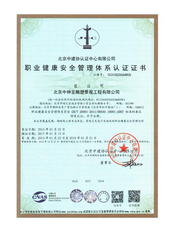 職業(yè)健康安全管理體系認(rèn)證證書英文