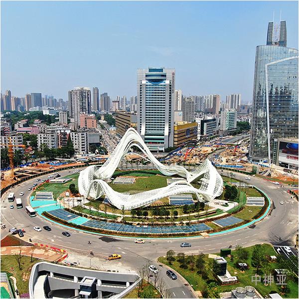 《星河》高40m 直徑90m 不銹鋼 鋼結(jié)構(gòu) 設(shè)計(jì):北京央美城市公共藝術(shù)院 2019年 位于武漢光谷廣場(chǎng)