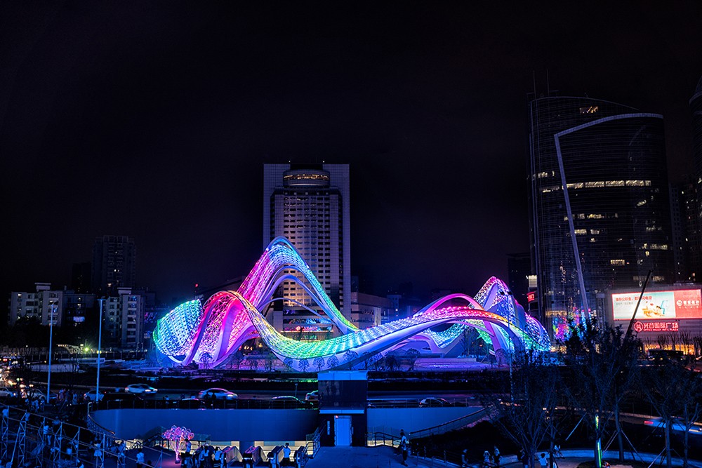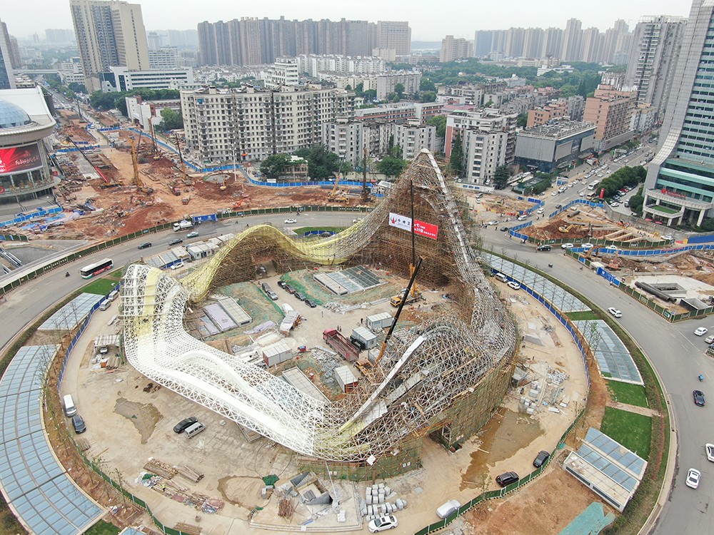《星河》高40m 直徑90m 不銹鋼 鋼結構 設計:北京央美城市公共藝術院 2019年 位于武漢光谷廣場